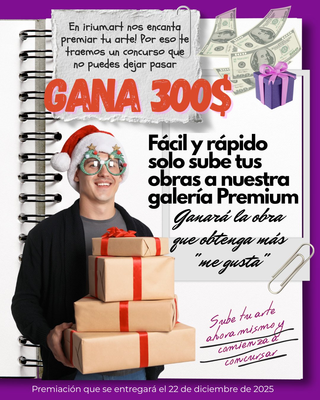 Si estás aquí es porque eres artista… Convierte tu arte 🎨🎭 en dinero 🫰🤑 gana 300$ por obtener más «me gusta» en nuestra galería premium